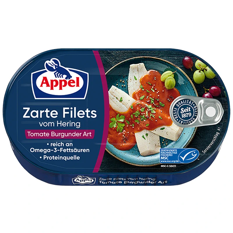 Appel Zarte Filets Tomate Burgunder Art 200 gSkladem 6 ks43 Kč/ ks