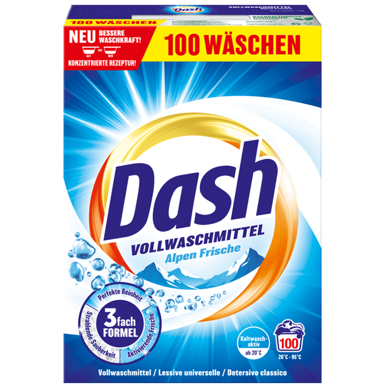 DASH VOLLWASCHMITTEL ALPEN FRISCHE PRACÍ PRÁŠEK - 100 pracích dávek, praní od 20°C - 95°C