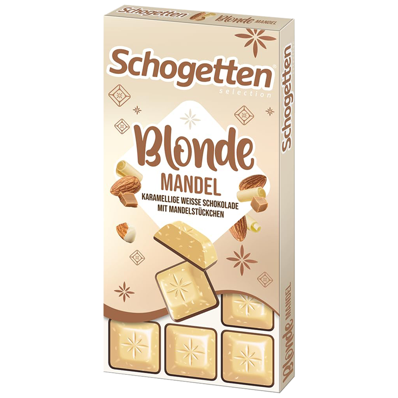 Schogetten Blonde Mandel přináší jemnou karamelizovanou bílou čokoládu doplněnou o křupavé kousky mandlí a krémové tóny mléčné čokolády. Výsledkem je dokonale vyvážená, sladká a lehce oříšková chuť, která si vás získá hned po prvním kousku.